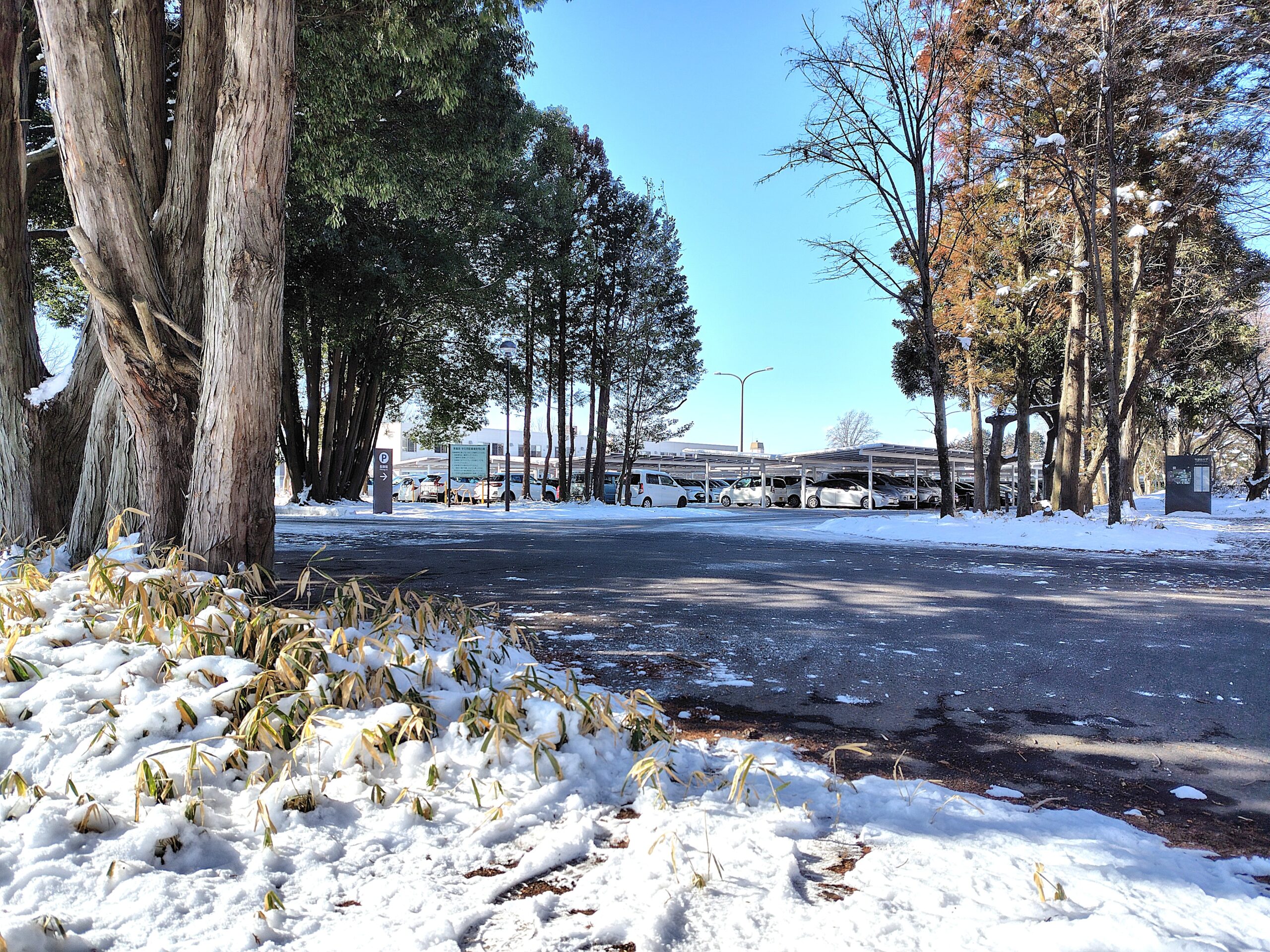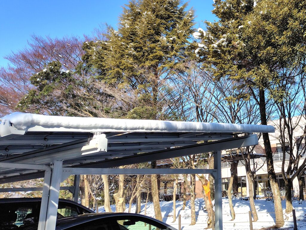 栃木県内で積雪。峰キャンパスの太陽光パネルつき駐車場は・・・